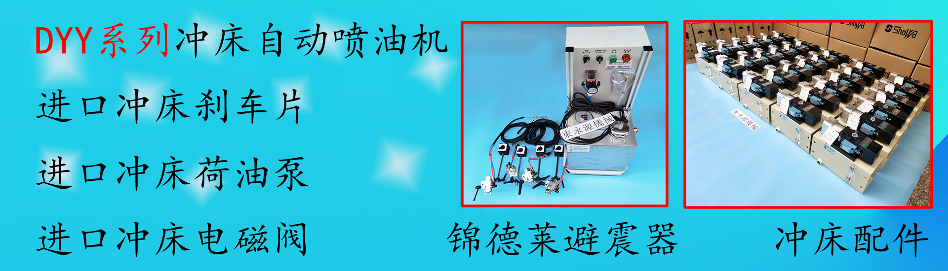 公司主要從事減震器研發(fā)、銷售、工程安裝。經(jīng)營主要產(chǎn)品有JEDLA氣壓式避震器、錦德萊氣壓式防震腳、液壓裁斷機減震墊、油壓沖床減震器、三坐標(biāo)防震墊、三次元減震器、測量儀器隔震墊、樓上沖床減震墊、紡織機減震腳、繡花機避震器、注塑機減震腳墊、機械設(shè)備防振墊、吸塑機減震墊、三坐標(biāo)減震器、沖壓自動涂油機、沖床自動噴油機、沖壓自動噴油裝置等工業(yè)機械防震產(chǎn)品。產(chǎn)品熱銷國內(nèi)市場。
